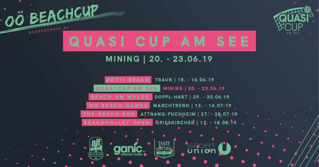 Die Quasi-Beacher gehören ab sofort mit dem "Quasi-Cup am See" als Innviertler Turnierstop zu Oberösterreichs größter Hobbyturnierserie, dem OÖ Beachcup. Gespielt wird am verlängerten Wochenende von Fronleichnam (Donnerstag = Feiertag + Samstag + Sonntag) auf … Quasi Cup am See weiterlesen